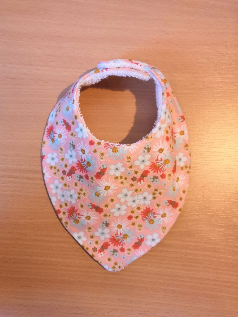 Un petit bavoir / bandana, en taille 0 – 18 mois environ. Pratique pour que bébé soit chic, même si il bave (merci les dents !).