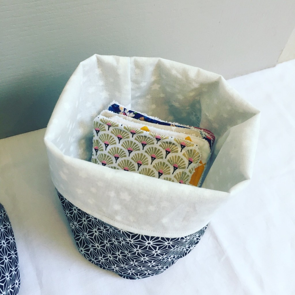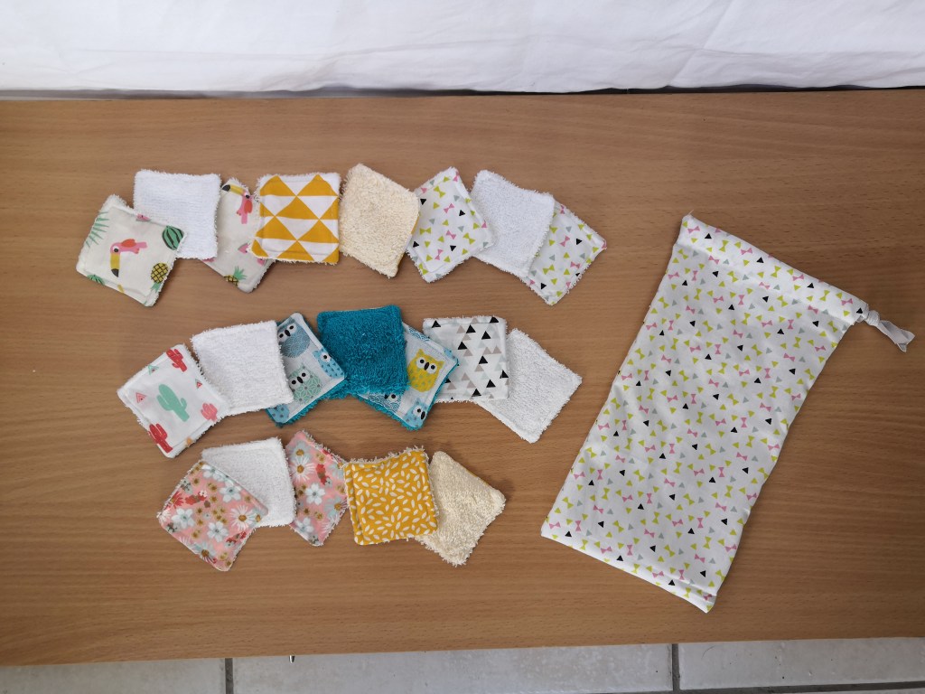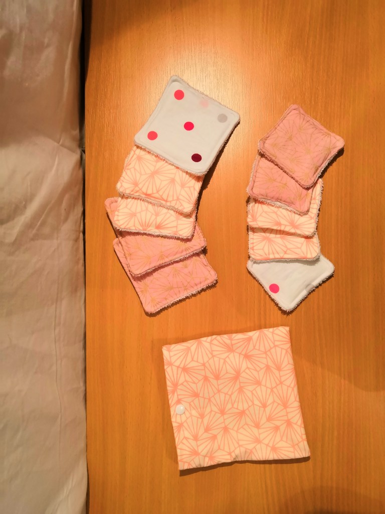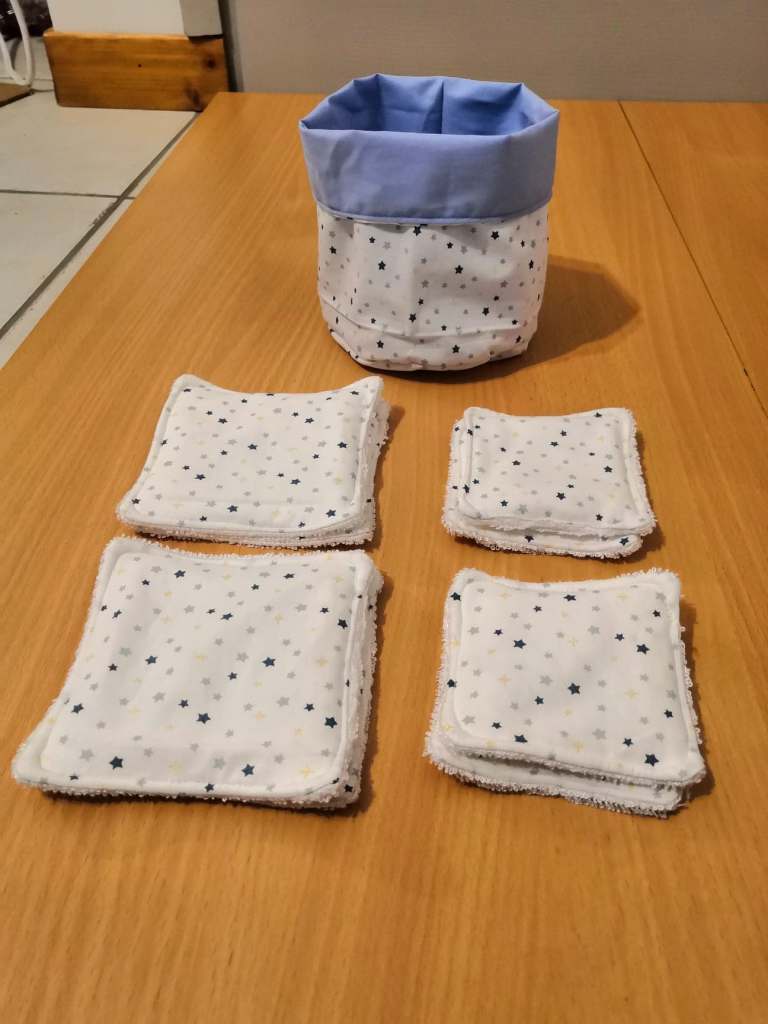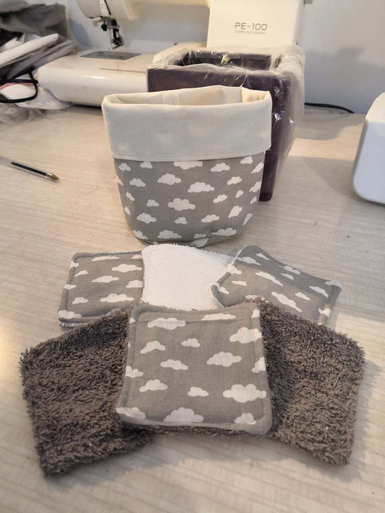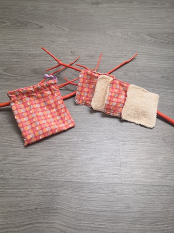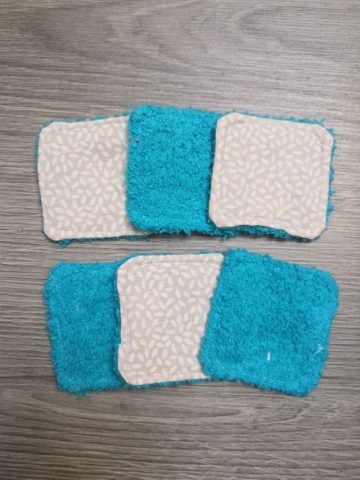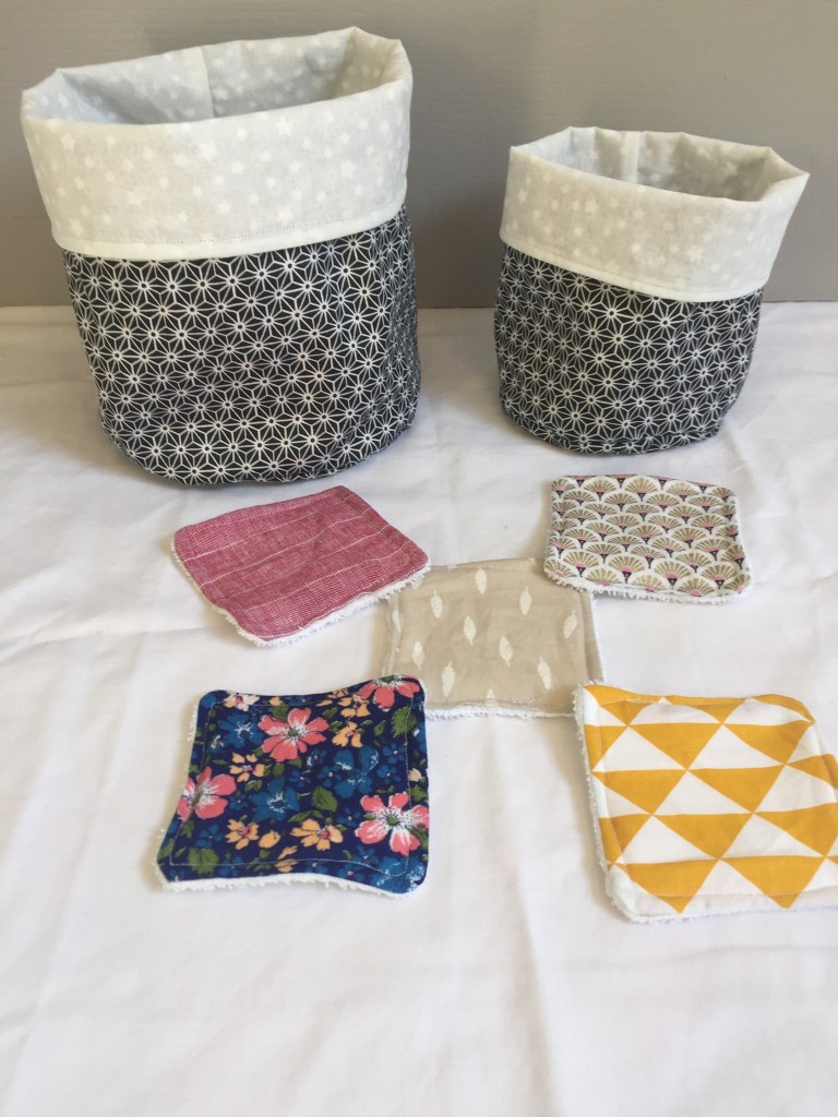 J’ai la solution : les cotons lavables. Je vous propose 3 tailles : 6×6 cm ; 8×8 cm ; 10×10 cm ; selon votre utilisation. Et pour les stocker je vous propose 2 solutions : les corbeilles rondes ou carrées ; ou la pochette parfaite quand vous partez en voyage.