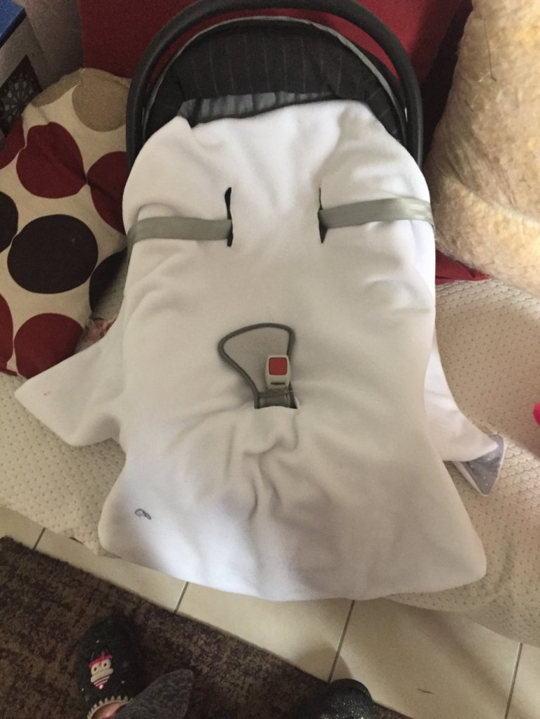 Cette couverture est très pratique, car elle ne bouge pas du cosy. En effet quand bébé a décidé de bouger ses pieds ou autre, les couvertures classiques posées sur le cosy bougent, glissent, tombent. Plus aucun problème avec celle-ci.