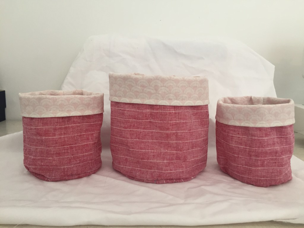 Il existe 3 tailles, pour toute sorte d’utilisation. Possibilité d’en faire des dépareillées, ou des identiques. Le format pour le rangement des couches ou autres peut se faire en panière carrée.