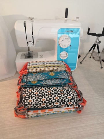 - Assembler les 3 couches de cotons à la surjeteuse, ou au point zigzag. Monter les couches de tissus comme pour le masque final.