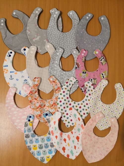 Un petit bavoir / bandana, en taille 0 – 18 mois environ. Pratique pour que bébé soit chic, même si il bave (merci les dents !). Possibilité d’en faire des plus grands, différentes couleurs disponible, avec prénom, mot ou n’importe quel broderie. Prix moyen : 12 €Prix dégressif si achat de plusieurs articles